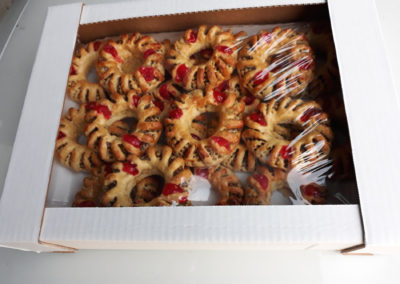 Buccellati di fichi: di forma rotonda, a tronchetto, a strudel o a mezza luna, confezioni in scatole fustellate sovrapponibili da kg 2,5.