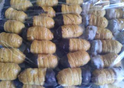 Cialde cannoli siciliani: grandi tipo catanesi lunghezza circa cm 13,8 x pz 100 a cart. Grandi tipo palermitani lunghezza circa cm 14,6 x pz 90 a cart. Mignon cm 6 x kg 3 a cart. I cannoli si possono avere di colore più chiaro o più scuro a richiesta del cliente.