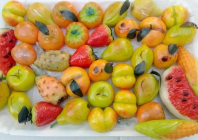 Pasta reale (fruttini di marzapane) vassoi da kg 2,5 termoretratti sistemate in scatole sovrapponibili.